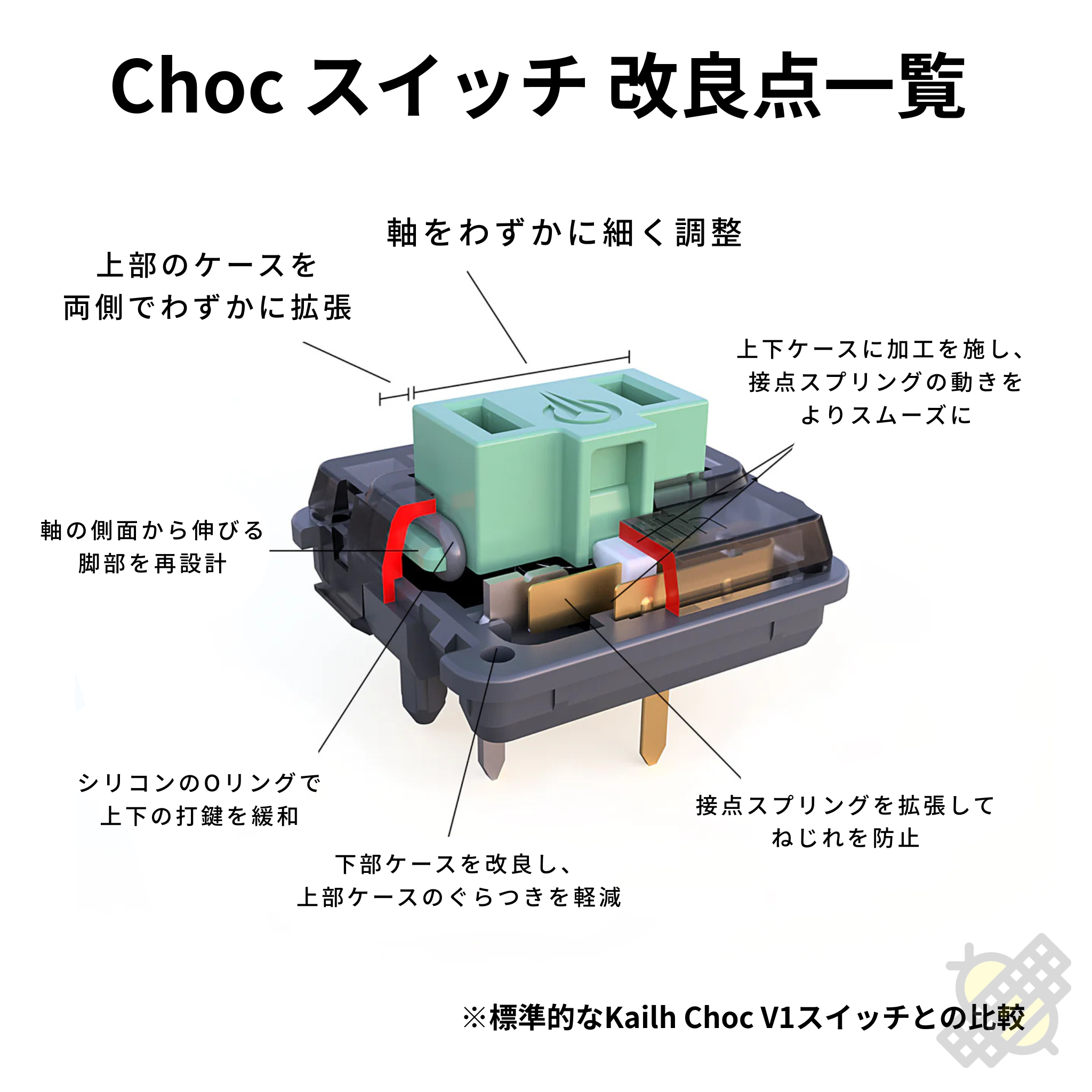 静音設計:スイッチ内部にシリコンリングを配置し、キー押下時および戻り時の音を効果的に低減。