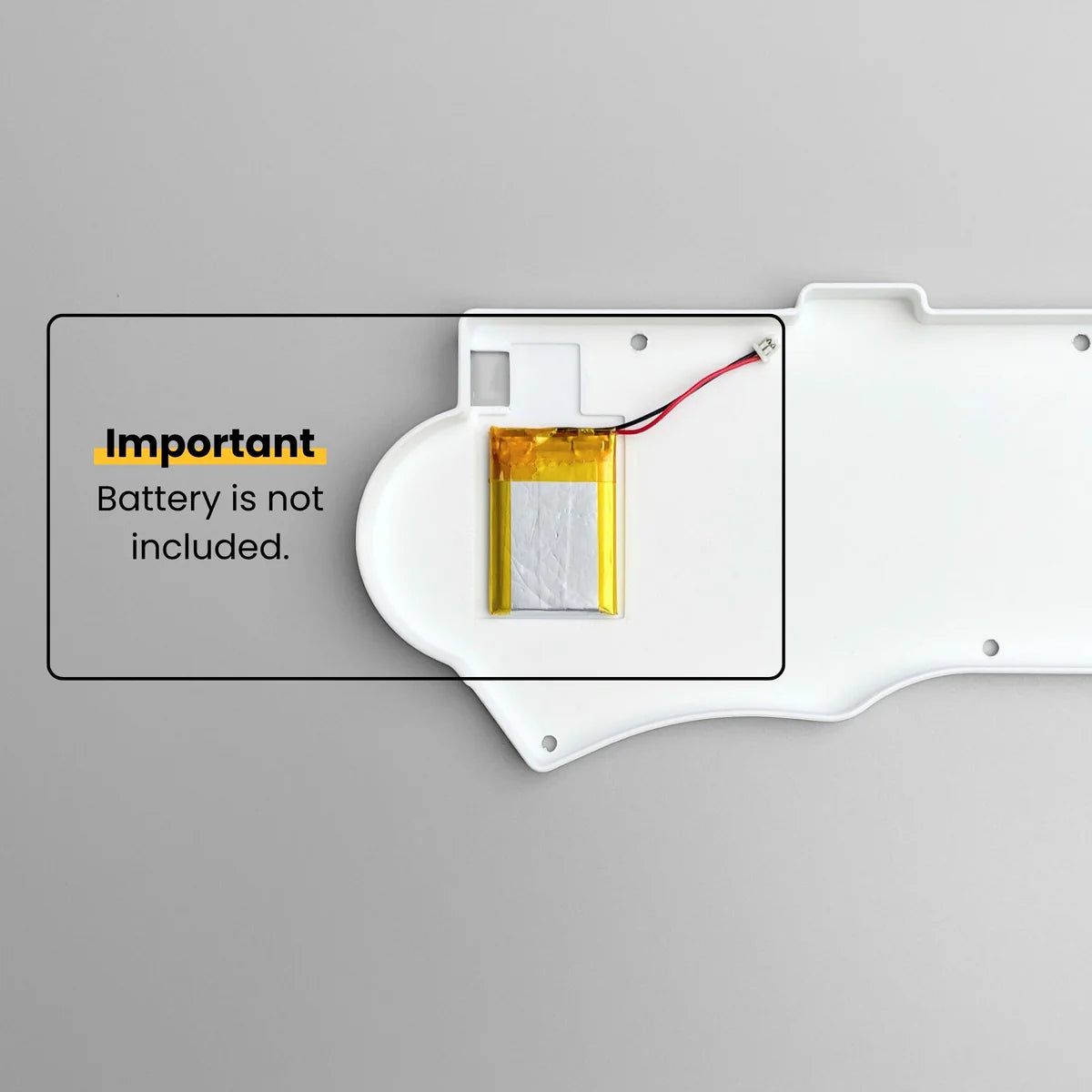 - リチウムポリマー電池(3.7V/100〜400mAh/保護回路(PCM)内蔵)で、寸法が厚さ4.3mm×縦36mm×横25.5mm以内(例:型番402535)かつ、Molex 51021-0200(1.25mmピッチ)コネクタ付きのものを使用してください。