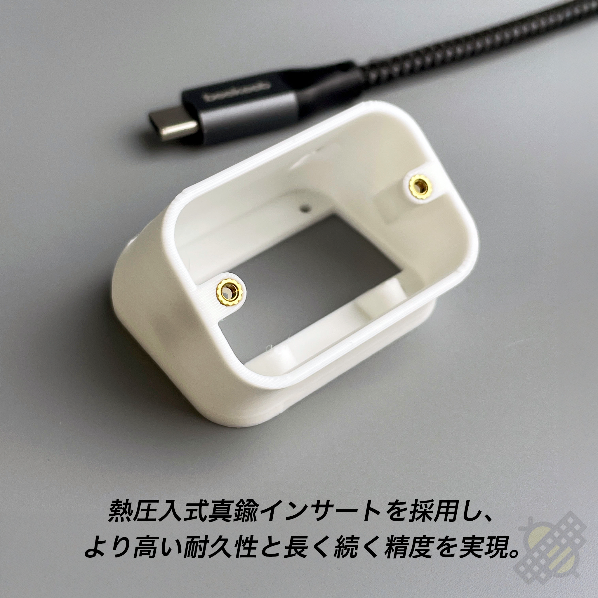 真鍮ヒートセットインサートをあらかじめ装着し、ねじ穴の破損を防止。高い耐久性を実現。